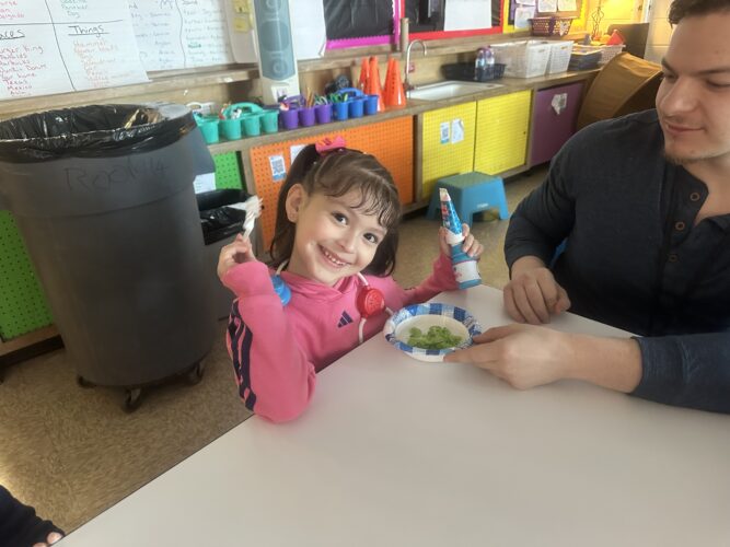 El lunes 2 de marzo fue el cumpleaños del Dr. Seuss. Los estudiantes de kínder y primer grado participaron en algunas actividades divertidas para celebrarlo. En el salón de la Sra. De Loera, los estudiantes hicieron slime para acompañar el libro “Bartholomew and the Oobleck”. En el salón de la Sra. Purse, los estudiantes decoraron globos aerostáticos de papel y escribieron sobre lo que quieren hacer cuando sean grandes. Esto estaba relacionado con el libro “Oh, The Places You’ll Go” (Oh, los lugares a los que irás). En el salón de la Sra. González, los estudiantes escucharon el cuento “Green Eggs and Ham” (Huevos verdes con jamón) y en el salón de la maestra Mann, los estudiantes pudieron probar huevos verdes con jamón y ver el cuento “The Cat in the Hat” (El gato en el sombrero).