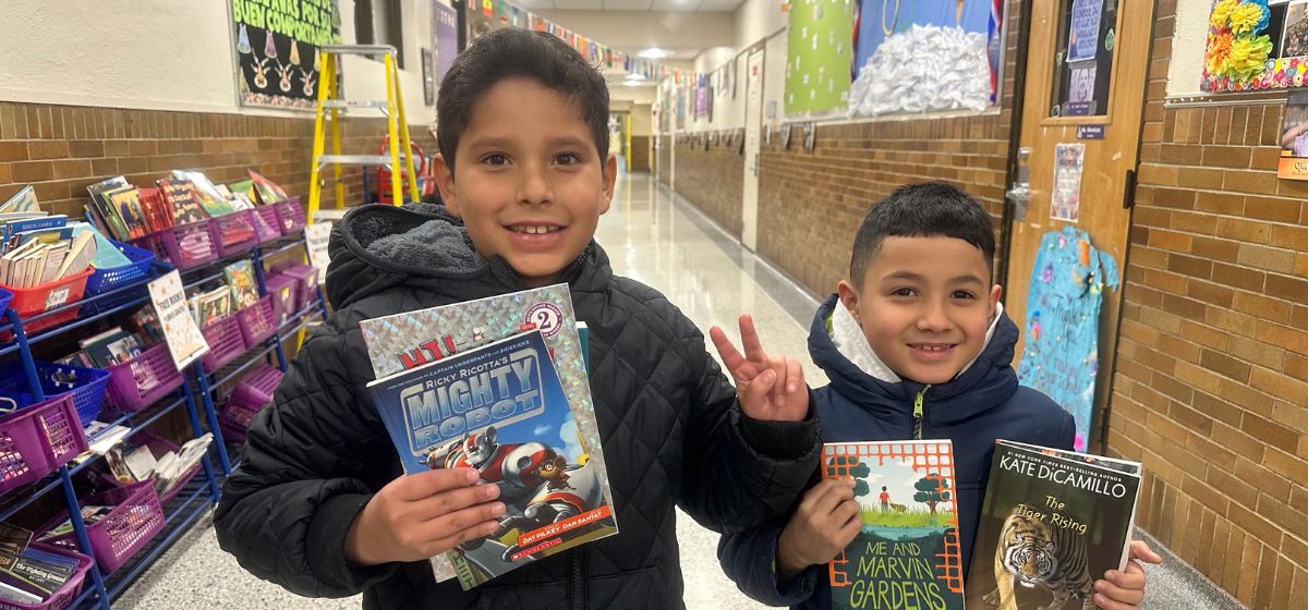 Los estudiantes fueron homenajeados en la reunión de la Junta Directiva del lunes, 2 de febrero, por sus logros durante el gran torneo de lectura. Francisco y Alexander, estudiantes de segundo grado, no pudieron asistir a la reunión de la Junta Directiva, por lo que el jueves, 26 de febrero, el personal del distrito acudió a entregarles algunos libros para celebrar su amor por la lectura. ¡Felicidades, chicos! Sigan leyendo todos los días.