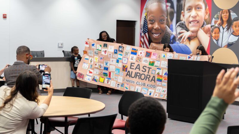 El mensaje nacional del Boys & Girls Club, “America Needs Club Kids” (América Necesita a los Niños de los Clubes), ahora tiene una fuerte presencia en East Aurora, donde cada estudiante de primaria tiene acceso a programas que apoyan lo académico, el desarrollo social-emocional y el enriquecimiento personal.